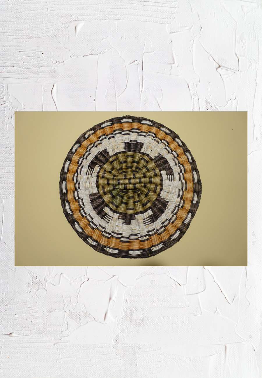 Indianischer Korb der Hopi III, Mesa, Pueblo-Kultur, eine sorgfältige Flechtarbeit aus dünner Weide (ca. 1940), mit Naturfarben gefärbt, Durchmesser ca. 26 cm. Diese kunstvolle Handarbeit hat mir Antonio Ferretti in Nordamerika beschafft.