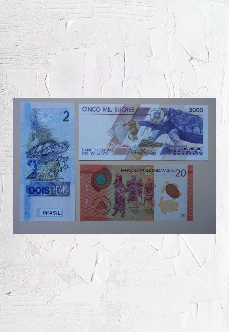 Auch auf Banknoten ist mein Lieblingsobjekt gar nicht so selten zu finden. Drei interessant gestaltete Geldscheine aus Brasilien (2 Reais), Ecuador (5000 Sucres) und Nicaragua (20 Cordobas). Dazu ein nicht nur für mich passendes Zitat: "Für einen guten Sammler muß Geld immer bedrucktes Papier sein" (Hans Grothe), d.h. die bevorzugte Bereitschaft, es für seine Sammlung auszugeben.
