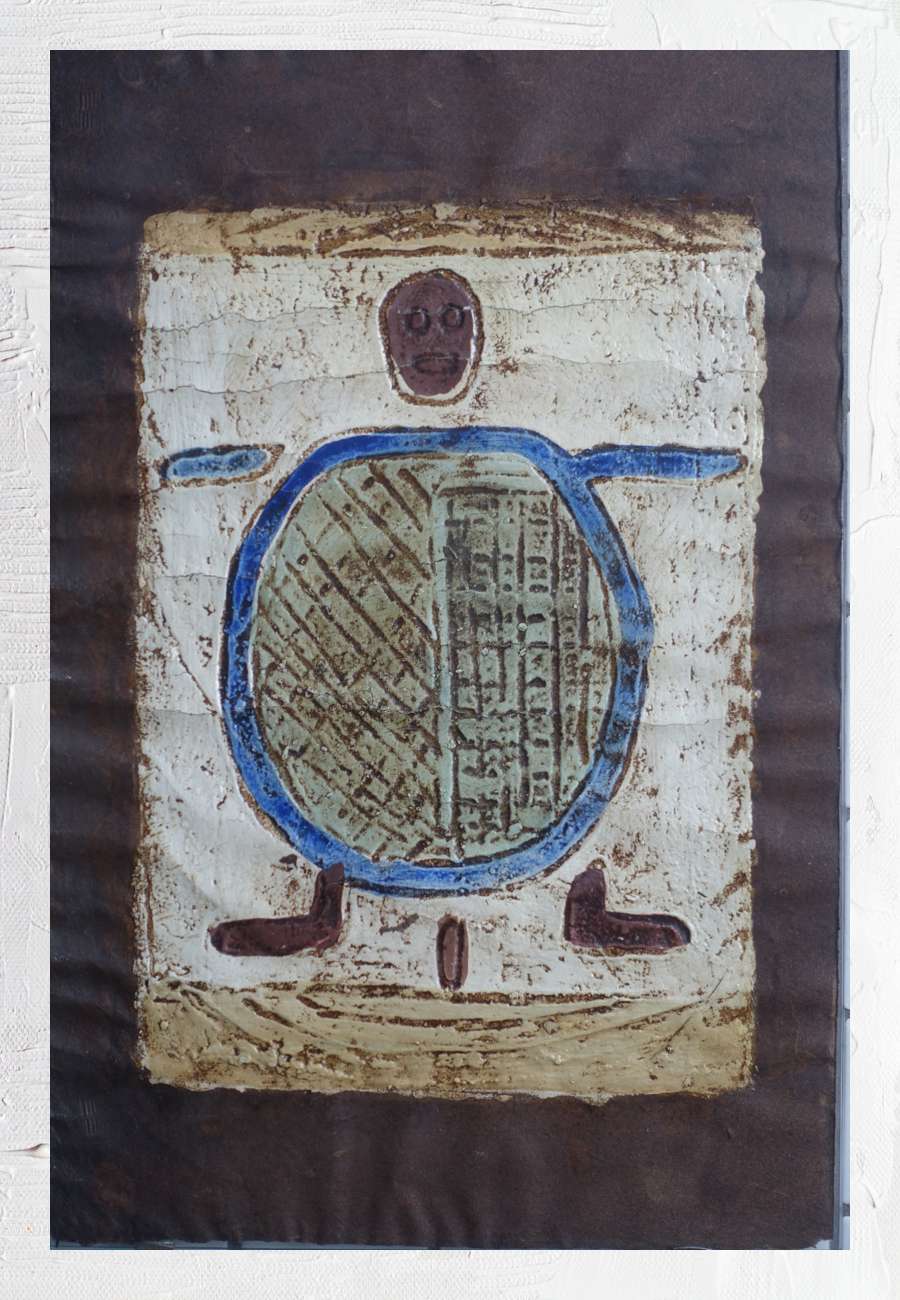"Schildkrötenmann", gemalt von einem indigenen Künstler mit ölhaltigen Naturfarben auf braunem Papier, ca. 39 x 25 cm. Das Bild wurde auf dem Indio-Markt in Saquisili (an der "Allee der Vulkane") erworben.