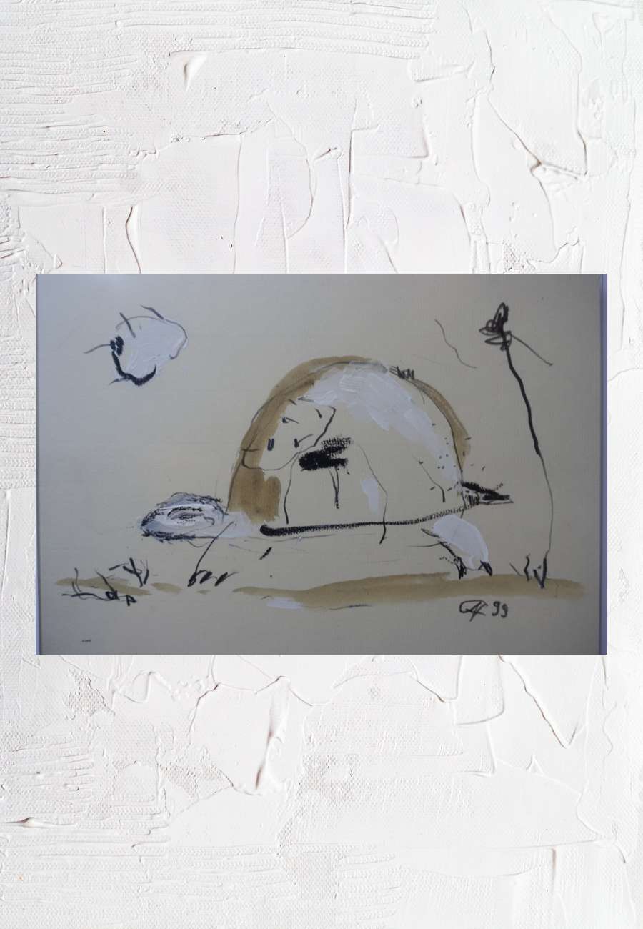 Locker gemaltes Bild , Bleistift, Ölkreide, Acryl und Beize, Format 28 x 20 cm.