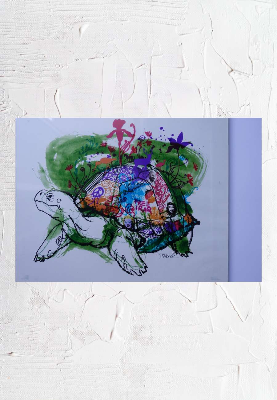 Illustration des polnischen Künstlers für die Titelseite SZ WOCHENENDE 22./23. April 2006 zum Artikel über die Schildkröte "Adwaitya" (Bedeutung: