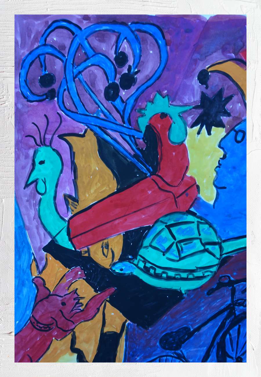 Aquarell, kreativ und farbenfroh, ein Geschenk der Hobbykünstlerin, sign. 2008, Format 40 x 30 cm.