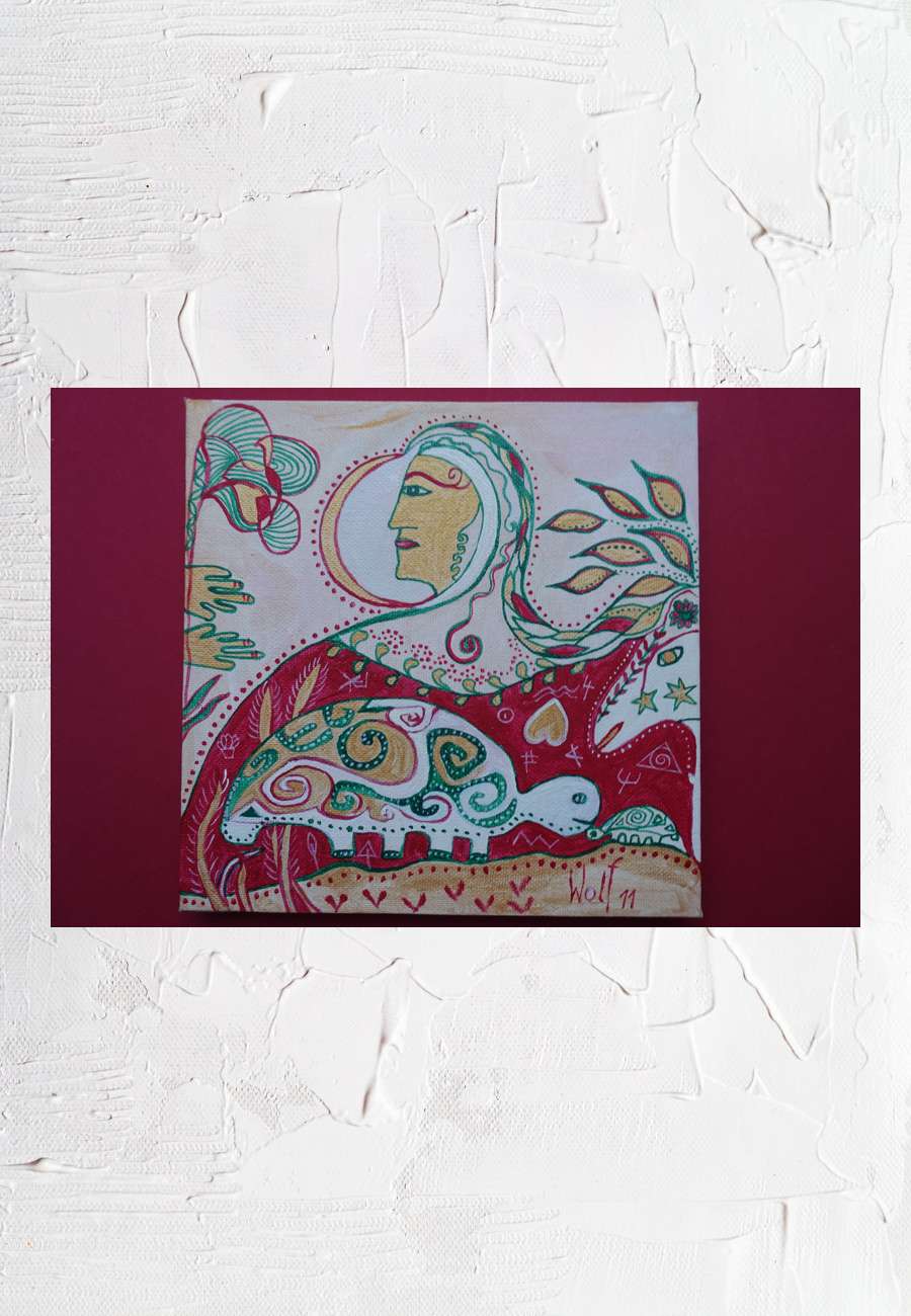Auftragsarbeit, Acryl auf Leinwand mit Keilrahmen, sign., Format 20 x 20 cm. Die Künstlerin ist Hundertwasser-Schülerin mit Atelier in Wiener Neustadt.