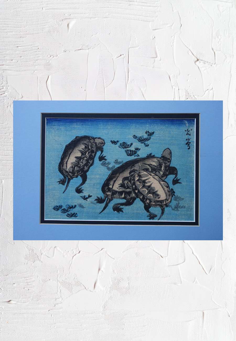 Japanischer Farbholzschnitt von ca. 1860, sign., Format mit Passepartout ca. 44 x 34 cm.