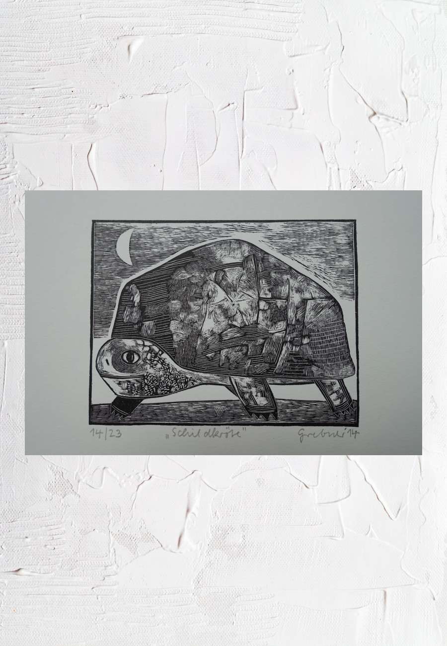 Kleiner Stich, das Druckverfahren entspricht dem Holzschnitt, num. 14/23, sign., Format 20 x 30 cm. Die diplomierte Grafikerin illustriert auch Bücher (z.B. zu Annette von Droste-Hülshoff und Goethe)