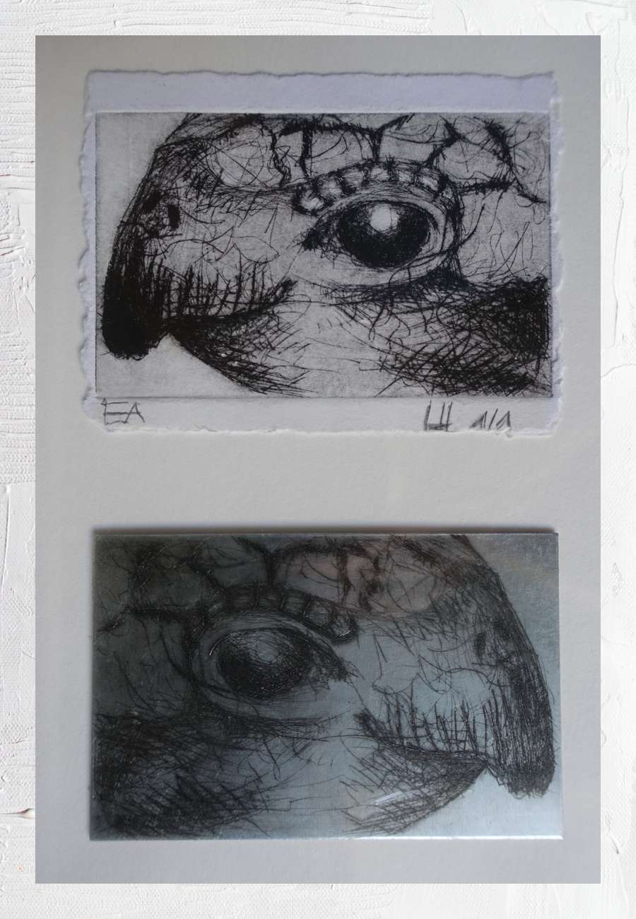 Kaltnadelradierung mit dazugehöriger Zinkplatte, deshalb ein Unikat, Format mit Rähmchen 13 x 18 cm, sign. und num. EA 1/1.