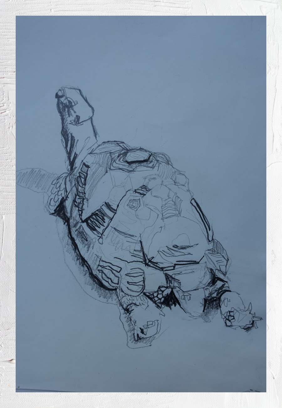 skizzierte im örtlichen Reptilien-Museum an lebenden Objekten. Er erzählte, dass dieses Blatt sein erster Verkauf ist.