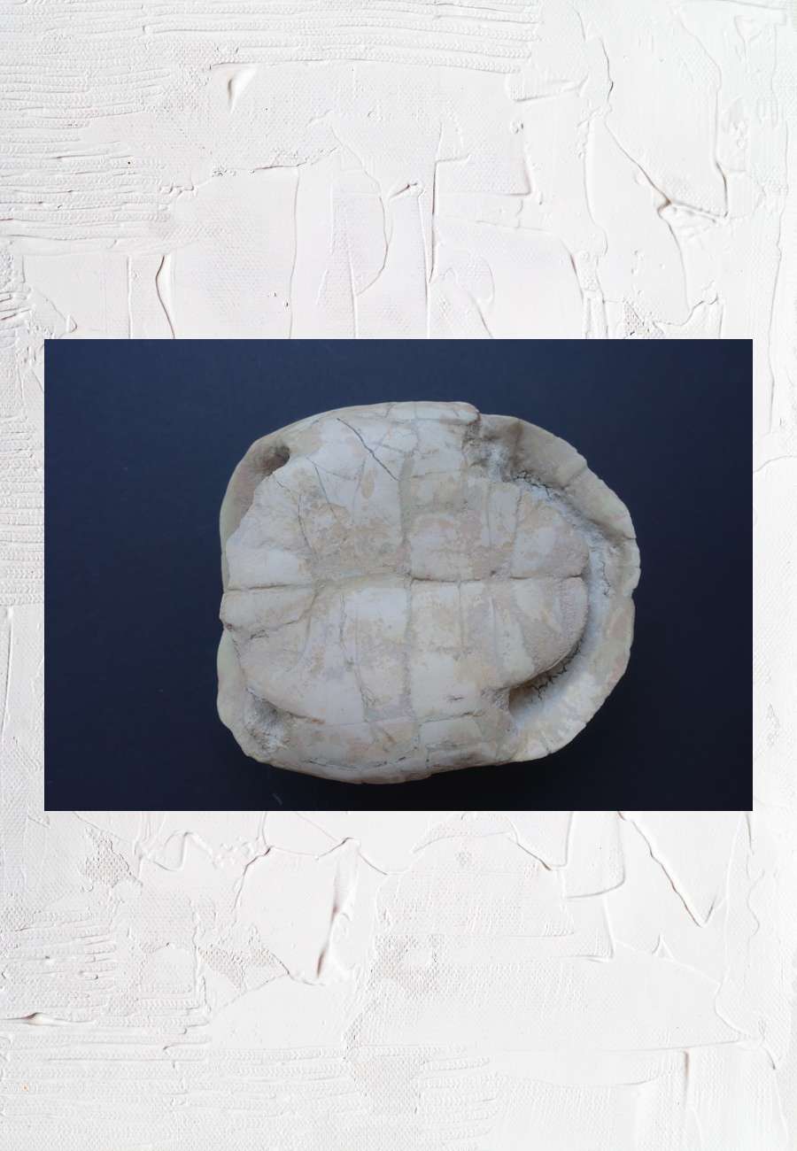 Versteinerung aus dem Oligozän, White River Badlands. Hier zu sehen ist die Unterseite der schon beschriebenen, kompletten Schildkröte, die sich von allen