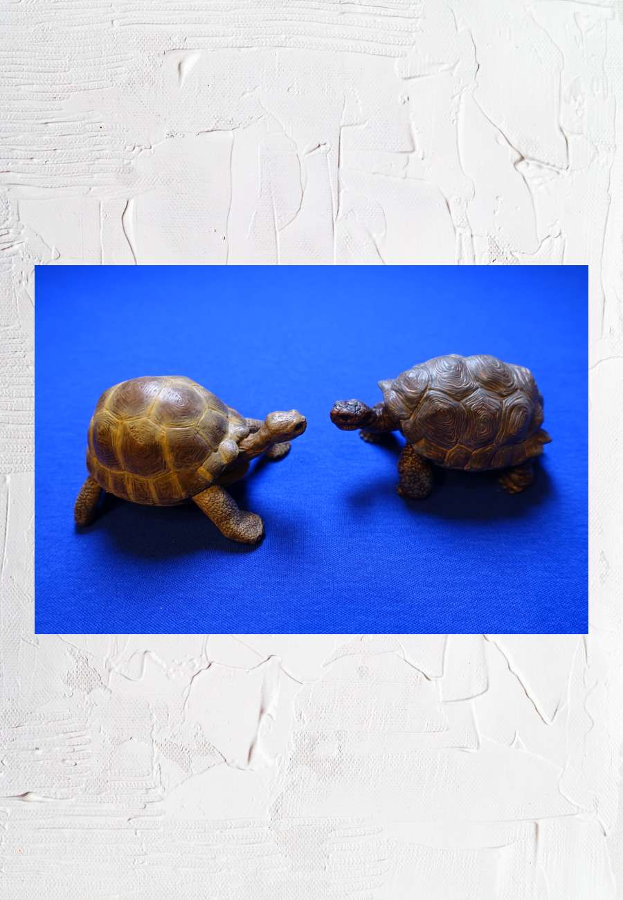 Naturalistisch gestaltete Schildkröten, z.B. von der Firma Schleich (Schwäbisch Gmünd), aber meist "Made in China", ca. 8 cm groß.