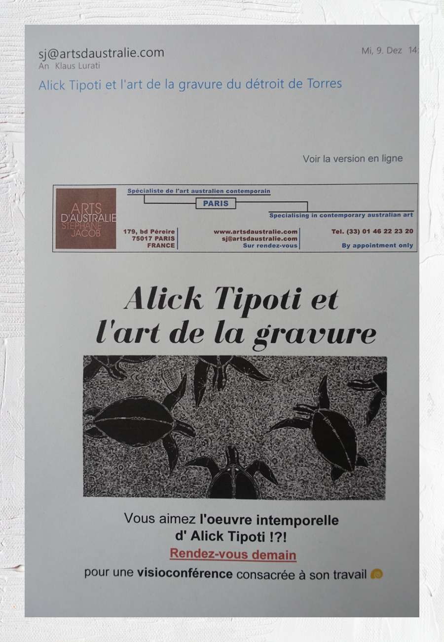 Aboriginal-Künstler (siehe dessen Linolschnitt in meiner Sammlung) zustande, sowie auch zu Dennis Nona, beide Künstler sind Australier.