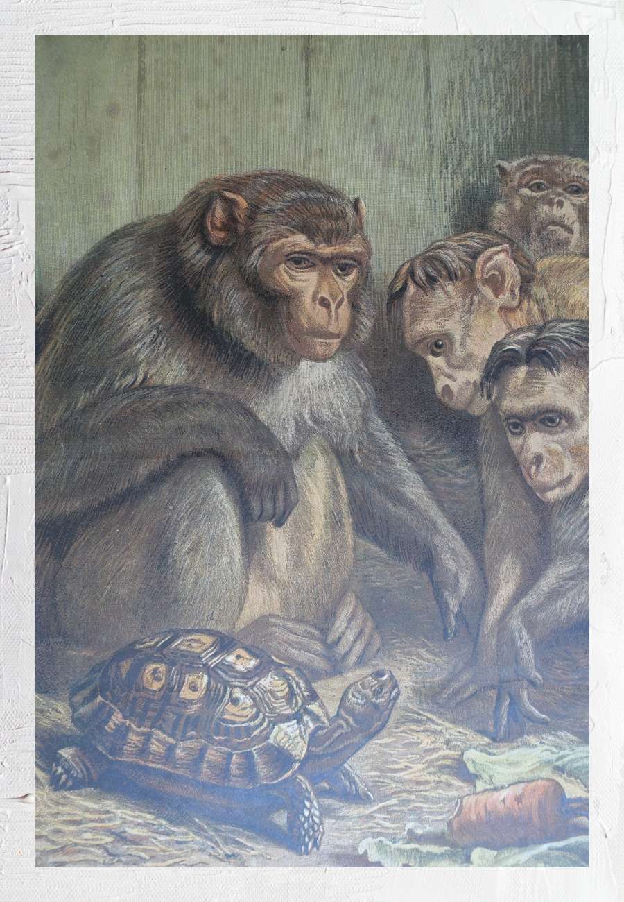 Graphik, Titel "A DARWINIAN QUESTION", Format mit Passepartout 33 x 42 cm. Der Künstler bezieht sich auf Darwin und ist vor allem durch seine