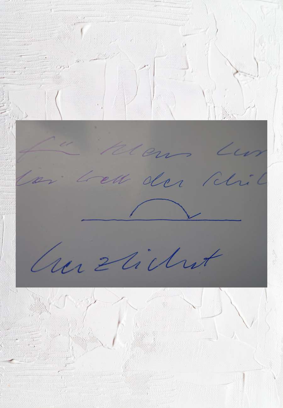 Ausschnitt aus einer Widmung des Künstlers von 2008. Die kleine Zeichnung ist geradezu genial. Noch stärker läßt sich eine Schildkröte nicht abstrahieren.