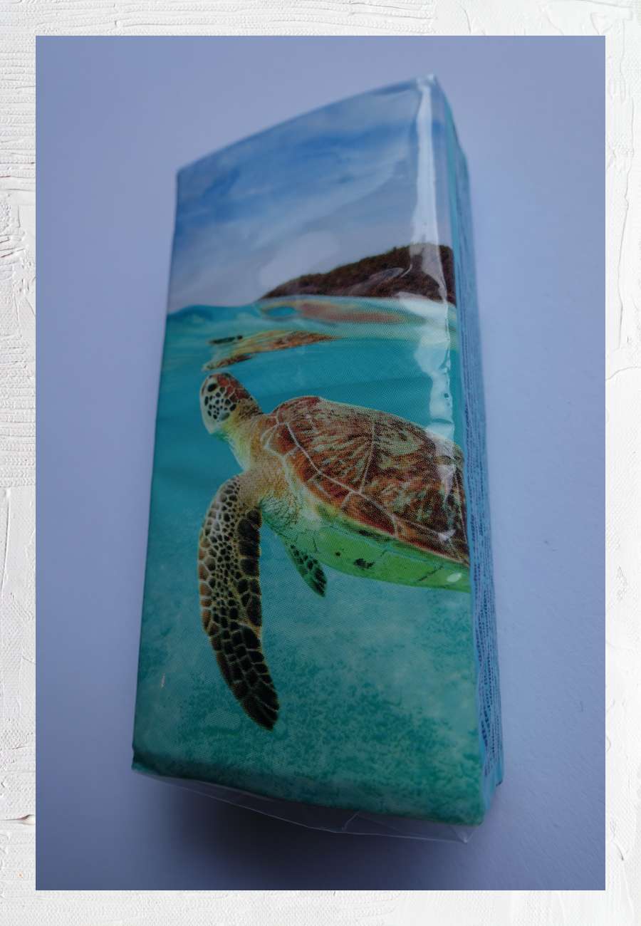 Selbst so banale Dinge wie ein Päckchen Taschentücher (vierlagig, chlorfrei gebleichter Zellstoff), Fa. Rossmann, landen als kleines Geschenk in der