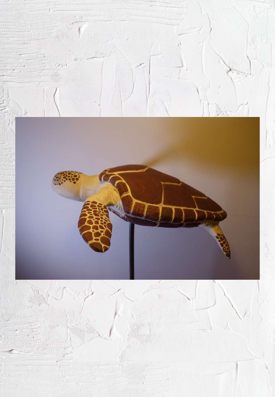 Holzbildhauerin mit Restaurierungsstudium (FH) ließ sich von einer elegant im Meer schwebenden Karettschildkröte inspirieren.