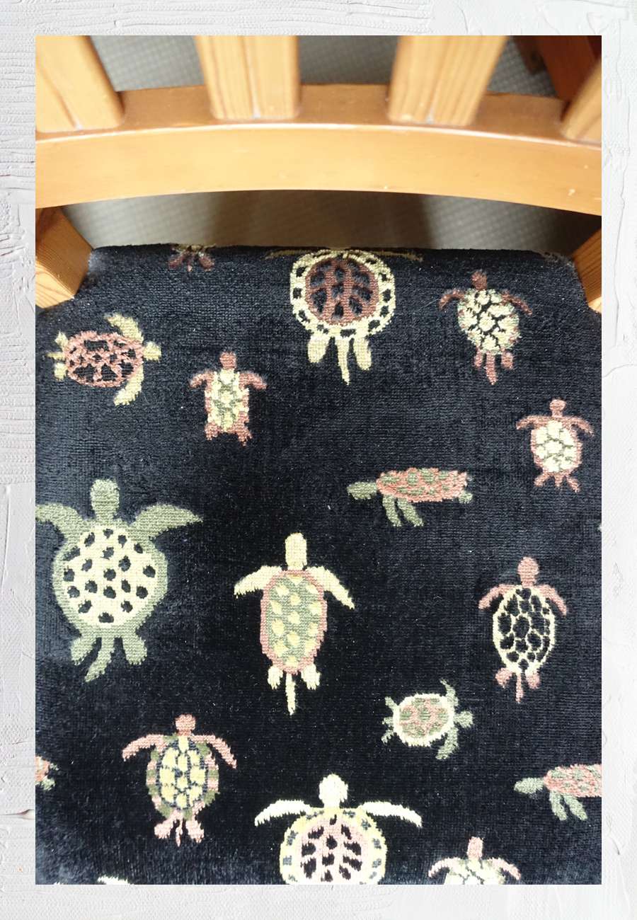 Als ich den Stoff mit gutem Design entdeckte, habe ich zwei Stühle damit beziehen lassen (s. auch "Suche : Kissenbezug").