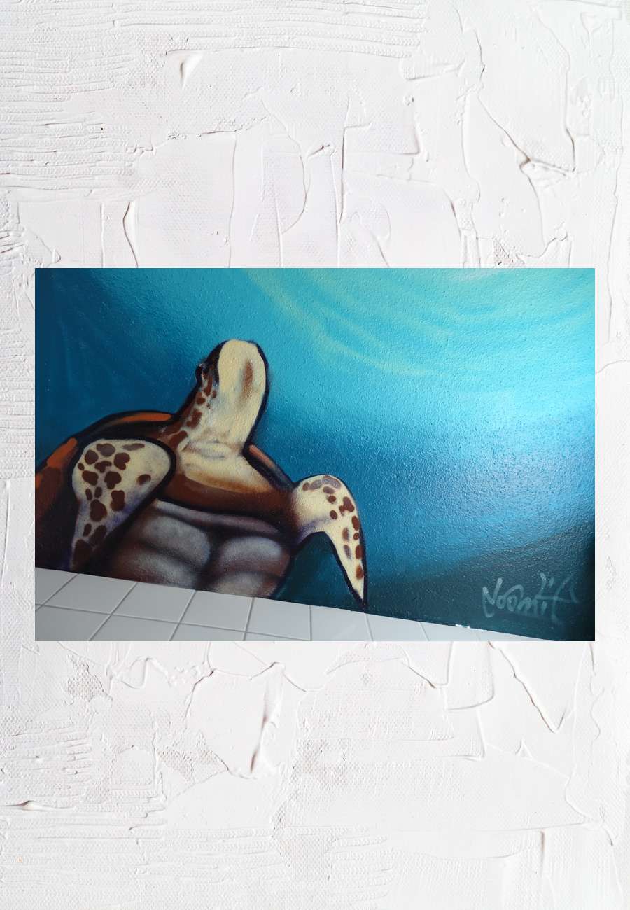 kleine Entwurf hatte mich sofort überzeugt. Der Künstler lebte sehr früh seine Lust aus "Kreatives mit Verbotenem zu verbinden". Seit einem Gerichtsverfahren (1984) verwendet er das Pseudonym Loomit. Er ging u. a. in die USA und lernte in New York das Tätowieren. Er gilt in Deutschland als Pionier der Street Art und ist schon lange in der internationalen Szene tätig. Natürlich ist er auch in München mit etlichen Arbeiten gut vertreten, darunter ein 23 Meter hohes Graffiti, gewidmet dem Widerstandskämpfer Georg Elser (zusammen mit WON ABC, dies entspricht seiner sehr kooperativen Arbeitsweise). Außerdem erhielt er den Schwabinger Kunstpreis aus der Hand von Oberbürgermeister C. Ude. Zudem gibt es eine ausführliche Film-Dokumentation "Lebenslinien - Loomit der Sprayer" als BR mitschnitt-Service auf DVD. In der Badewanne träume ich zuweilen vom tauchen oder denke an Picasso: "Kunst wäscht den Staub des Alltags von der