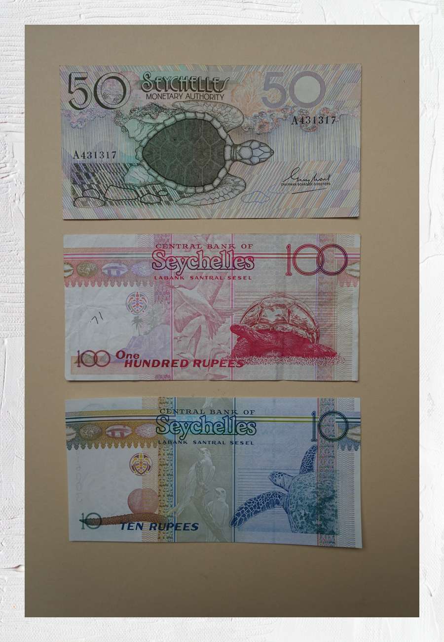 Hier die fast nur noch auf dem Aldabra-Atoll heimischen Riesenschildkröten (Bildmitte), ansonsten die stärker verbreiteten Meeresschildkröten.