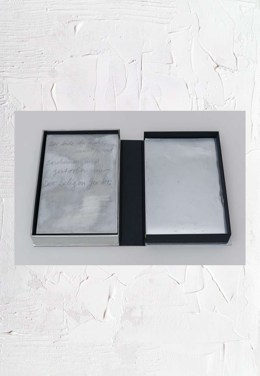 Platten. Das Werk befindet sich in einer Metallkassette (32 x 22 x 6,5 cm), mit grauem Filz ausgeschlagen (Handbuchbinderei, Meister Olaf Nie, Weßling).