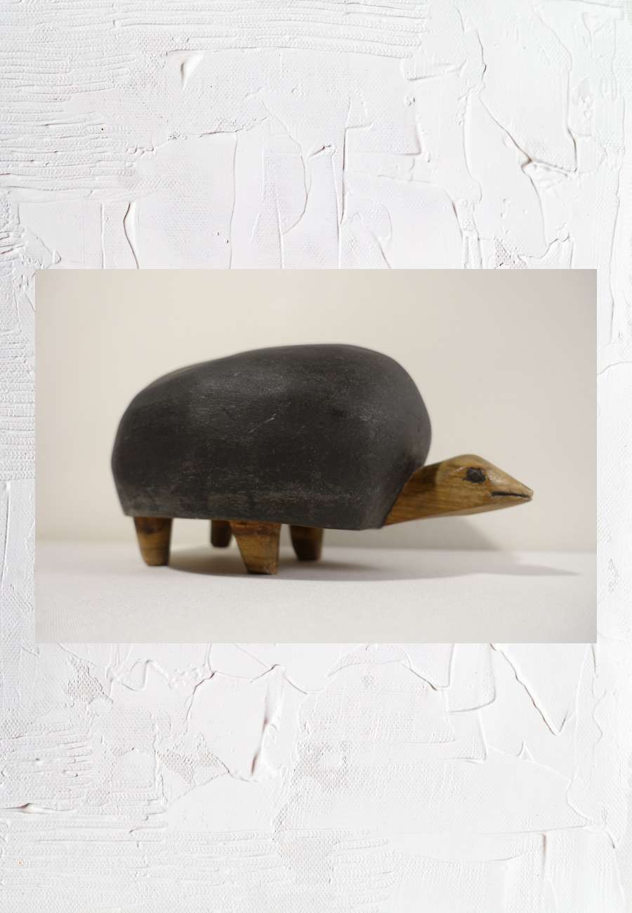 Massives Holz, aus einem Stück geschnitzt, Panzer schwarz patiniert, die Füße kaum gestaltet, Größe 26 cm. Zeitgenössisches Handwerk aus Afrika, über