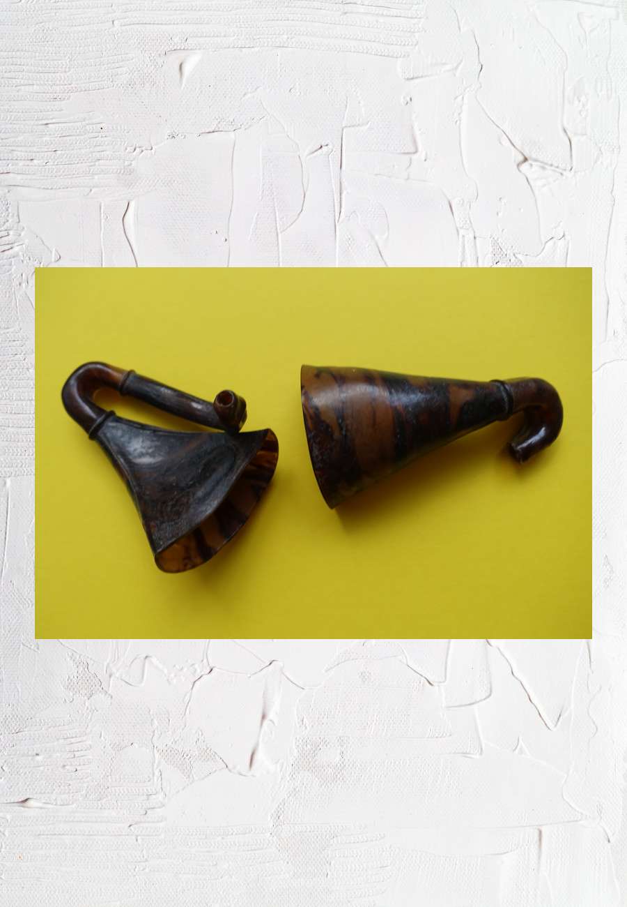 Hier handelt es sich um ein altes Hörrohr aus Schildpatt, wie es schon Beethoven zur Verständigung benötigt hat.