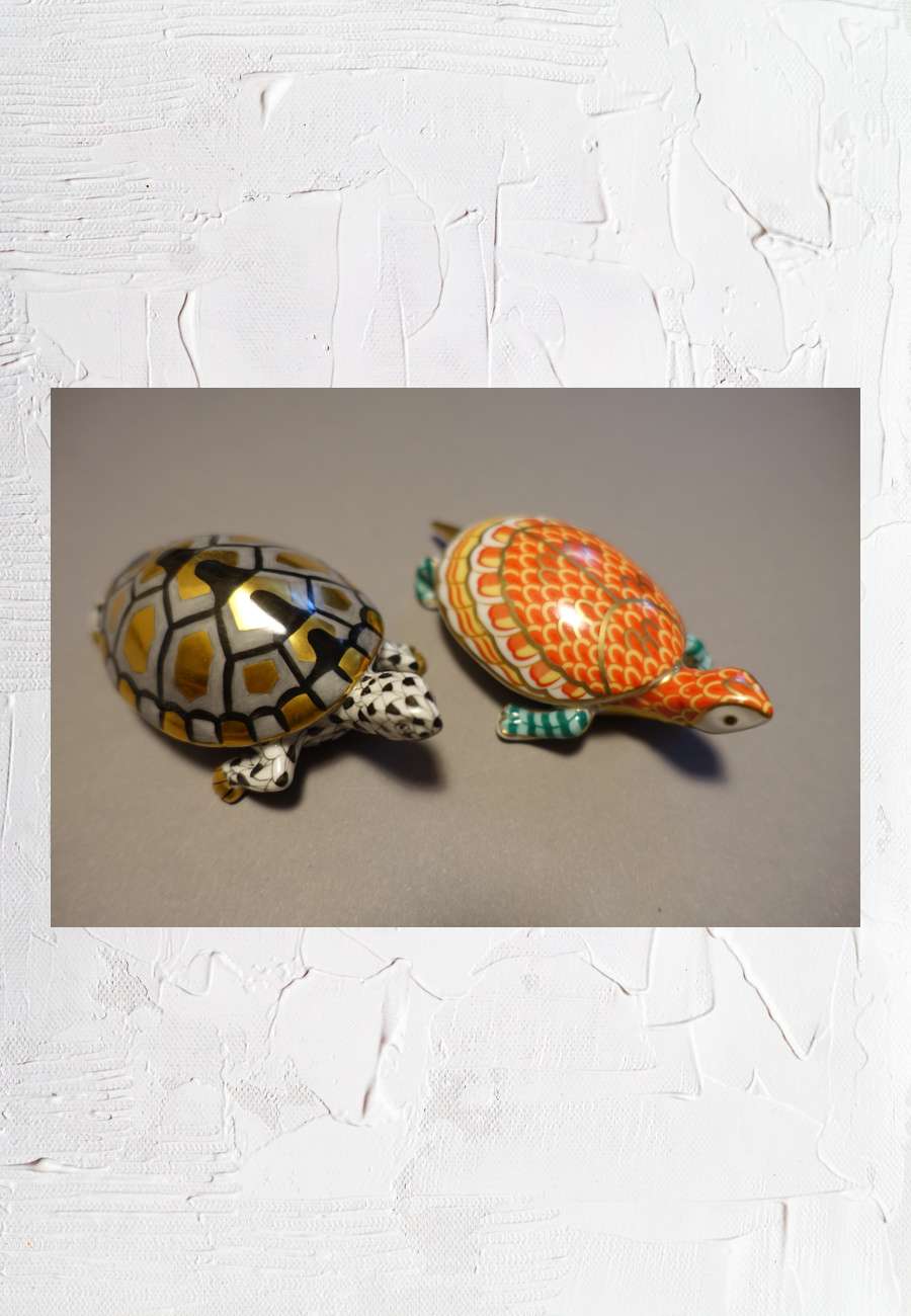 Links: ein farblich schönes Gegenstück der Porzellanmanufaktur "Herend Hungary" (Ungarn), handpainted, num. und sign., Größe 10 cm.