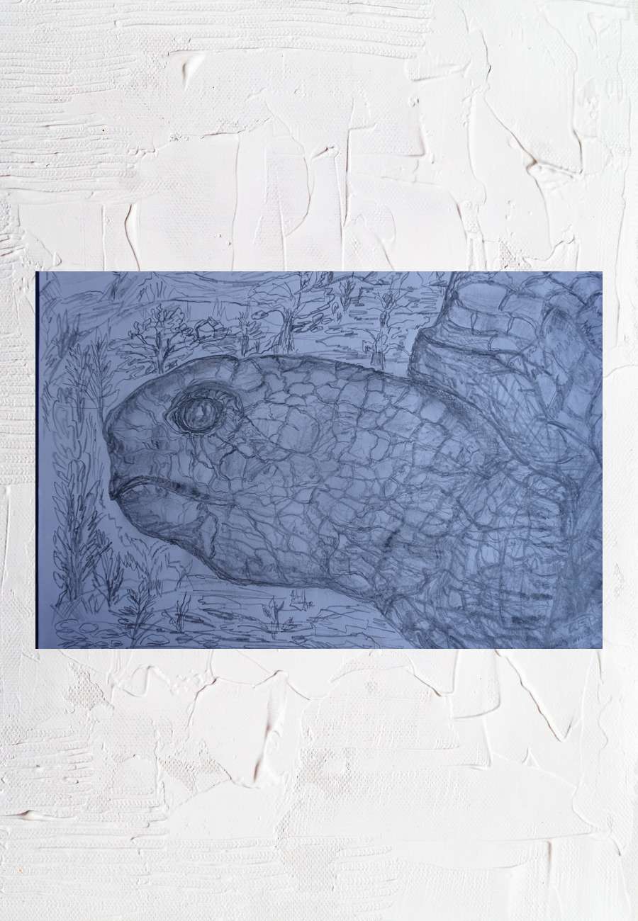 Die sorgfältige Zeichnung entstand im Rahmen der Kunsttherapie in Haar, Bleistift, sign. , Format 40 x 30 cm.