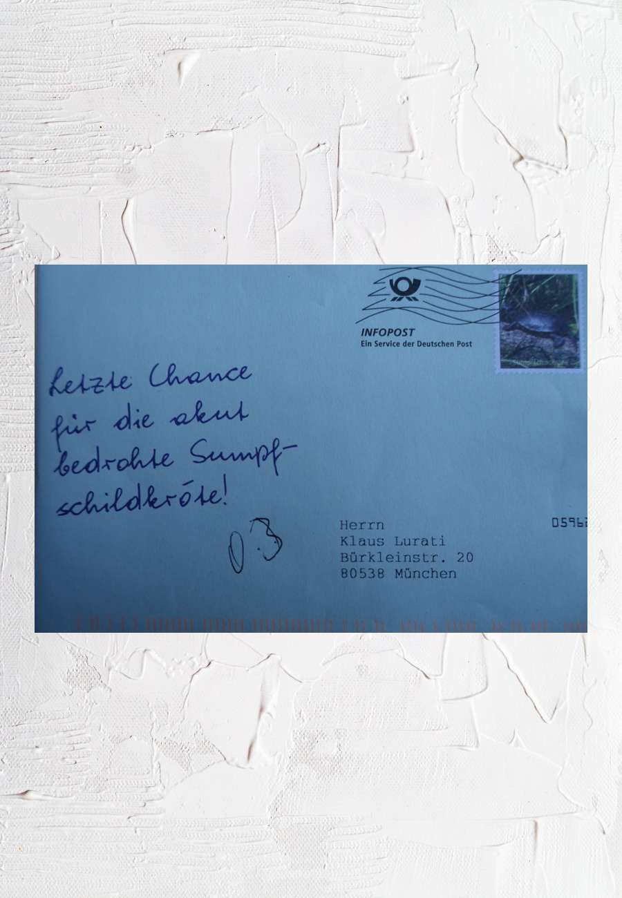 Die Heinz Sielmann Stiftung (Gut Herbigshagen in Duderstadt) wirbt hier mit dem Motiv der Europäischen Sumpfschildkröte. Ursprünglich in ganz Deutschland häufig vertreten, wurde sie fast