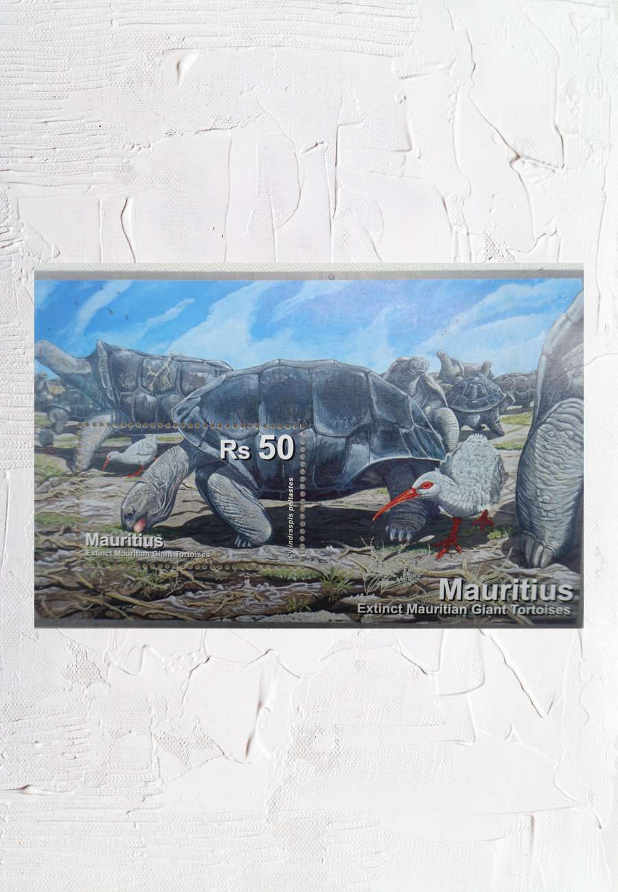 Dieser Briefmarkenblock von 2009 weist darauf hin, dass die endemischen Riesenschildkröten auf der Insel Mauritius (im Südwesten des Indischen Ozeans) um 1800 ausgestorben sind, wie auch der Dodo (der abgebildete Vogel ist jedoch kein Dodo). Dagegen gibt es dort Aldabra-Riesenschildkröten, die aber in einem großen Gehege leben. Übrigens, wie zu sehen, kann man über Briefmarken vieles lernen. Die wohl weltweit bekannteste Briefmarke , die "Blaue Mauritius" (mit dem Profil der Queen Victoria) wurde vom britischen Gouverneur 1847 veranlaßt. Ein Exemplar befindet sich im Privatbesitz von Queen Elizabeth II. und Heinz Erhardt hat der Marke sogar ein Gedicht gewidmet, in dem für ihn typischen Humor.