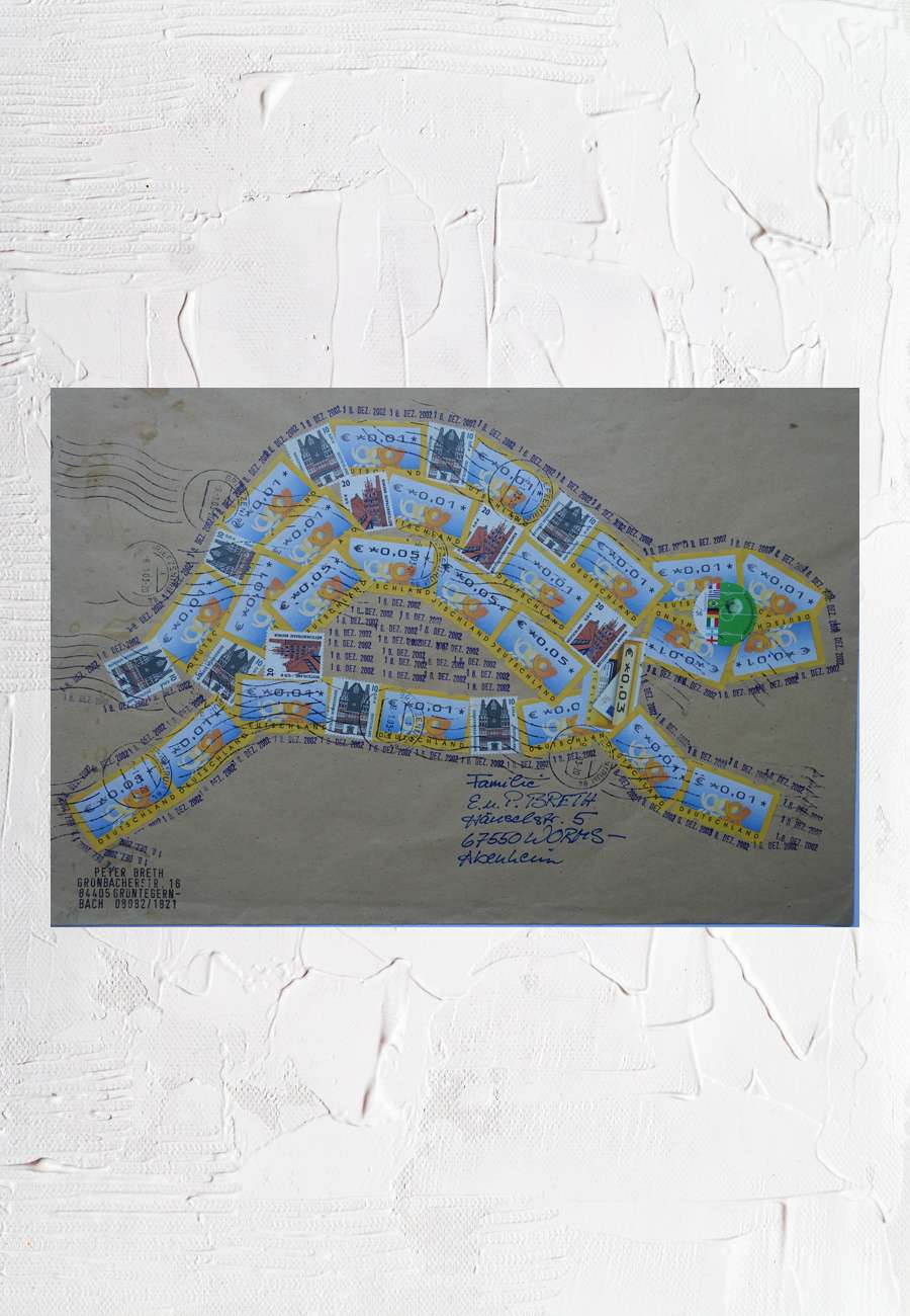 Wer hätte gedacht, dass man allein aus deutschen Postwerzeichen und Datumsstempeln eine Schildkröte so kreativ gestalten kann?