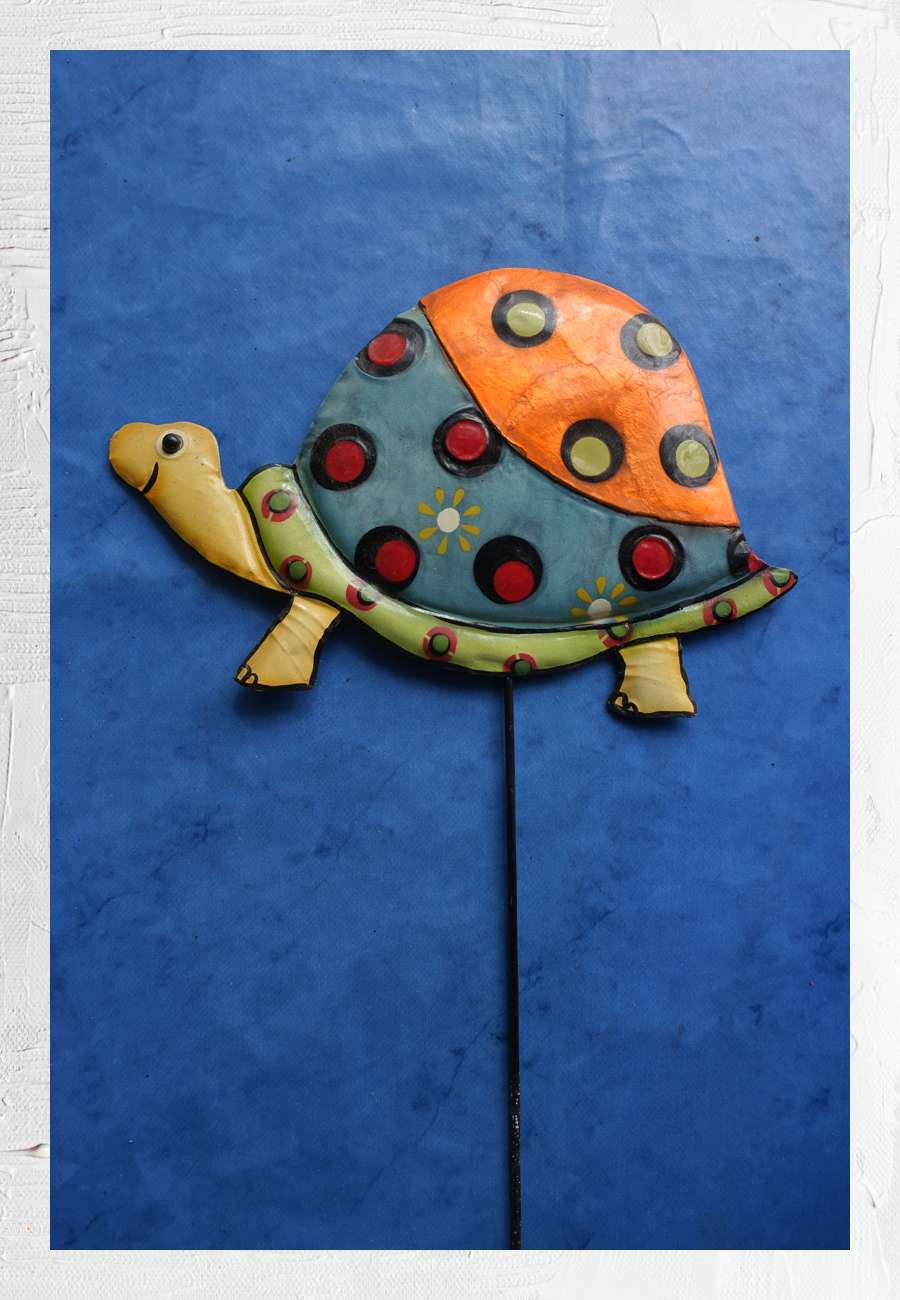 Deko z.B. für einen Blumenkasten, Blech, handbemalt, Höhe (mit Metallstab) 42 cm.