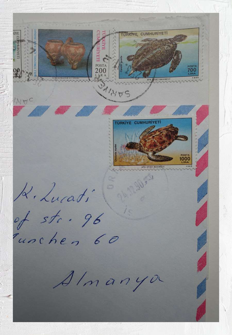 Diese beiden Briefe schrieb mein Freund Selahattin Taran (Türkei) aus Kadiköy, dem asiatischen Teil Istanbuls. Oben ist die Unechte Karettschildkröte, unten die