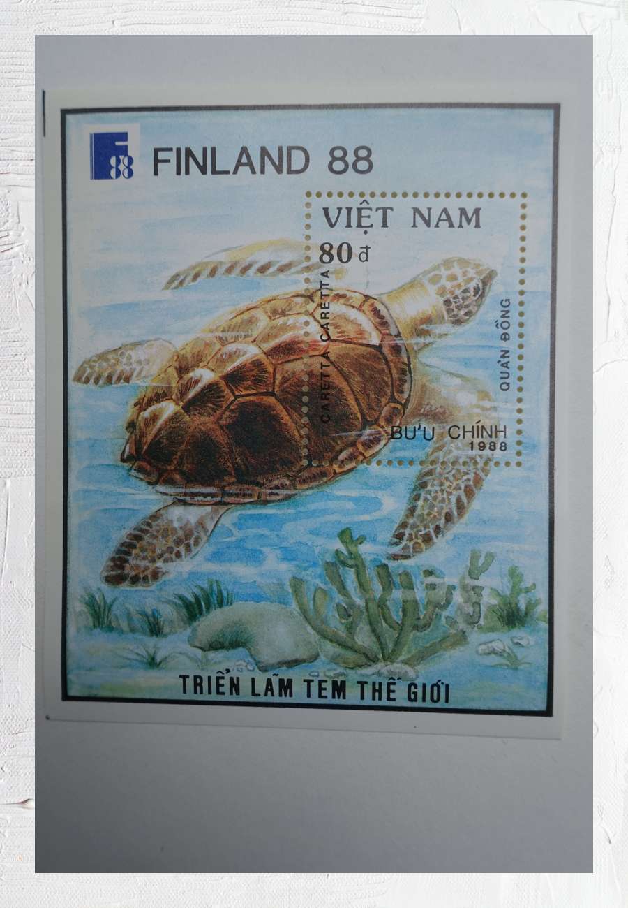 Zur Internationalen Briefmarkenausstellung Finlandia 1988 (Helsinki) hat auch die Sozialistische Republik Vietnam mit 6 Einzelwerten und diesem Block zum Thema