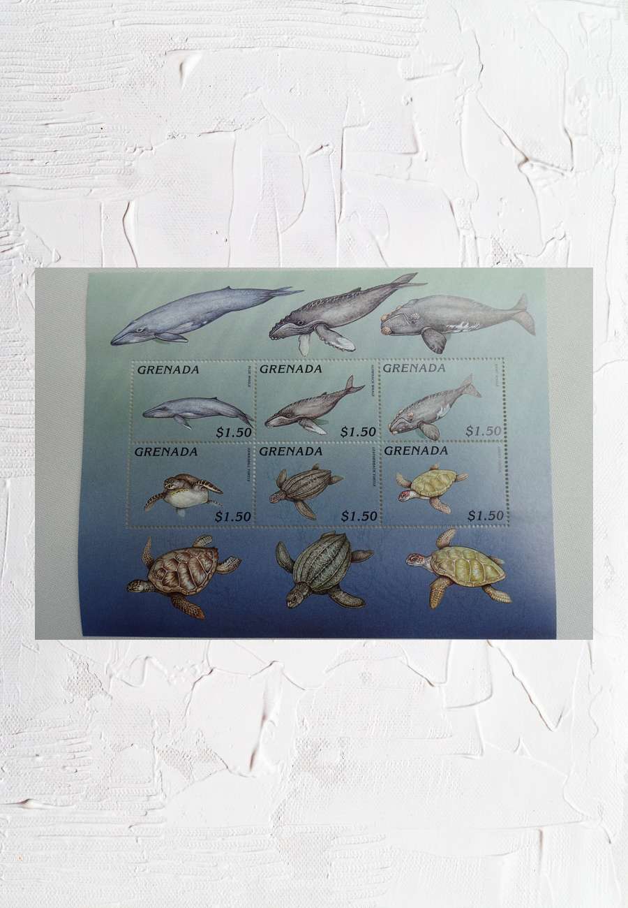 Ansprechend gestalteter Block der kleinen karibischen Insel Grenada, die zum Commonwealth gehört. Es gibt weitere Marken mit Schildkröten-Motiven, sogar in Verbindung mit Walt Disney Figuren.