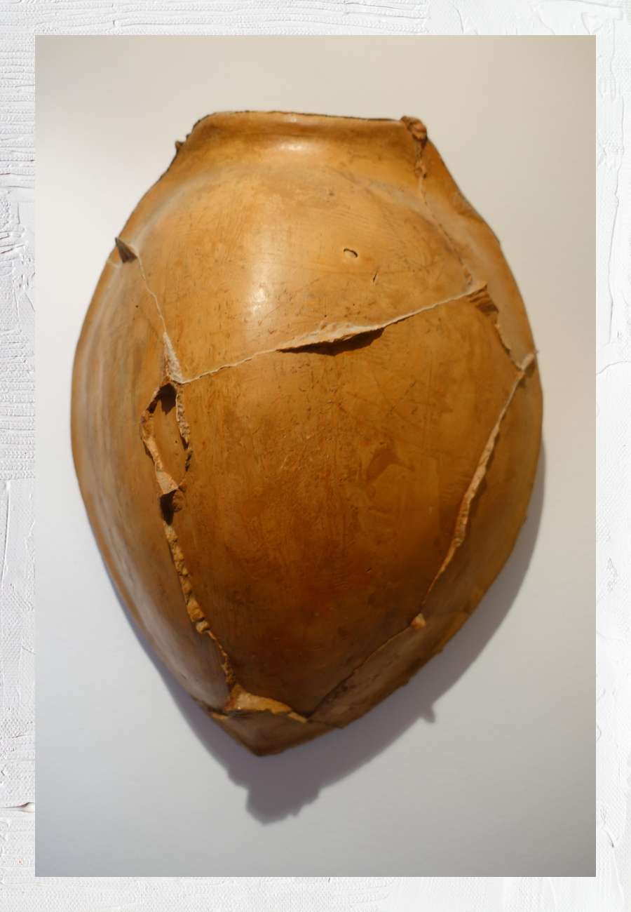 Auftragsarbeit, Terrakotta, gute Form und interessante Oberflächengestaltung, rückseitig 2 starke Metallstäbe für eine "schwebende" Wandbefestigung, die einen Schattenwurf ermöglicht. Dies war dem Künstler aus Südkorea, der zu dieser Zeit noch an der Kunstakademie