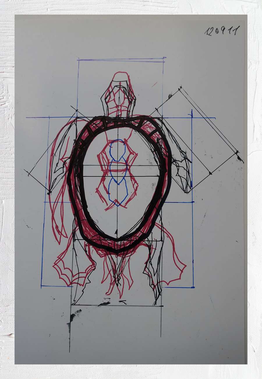 Entwurf der Aufteilung der Felder zur Gemeinschaftsarbeit der Malgruppe im ASZ Haidhausen (siehe Malerei).