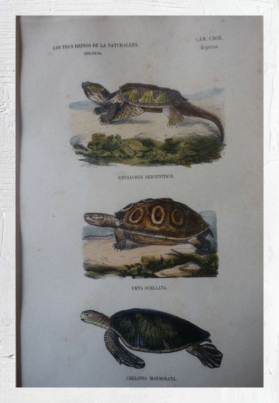 Lithografie, handcoloriert, um 1865, aus einem spanischem Zoologiebuch, Format mit Rahmen 30 x 40 cm.