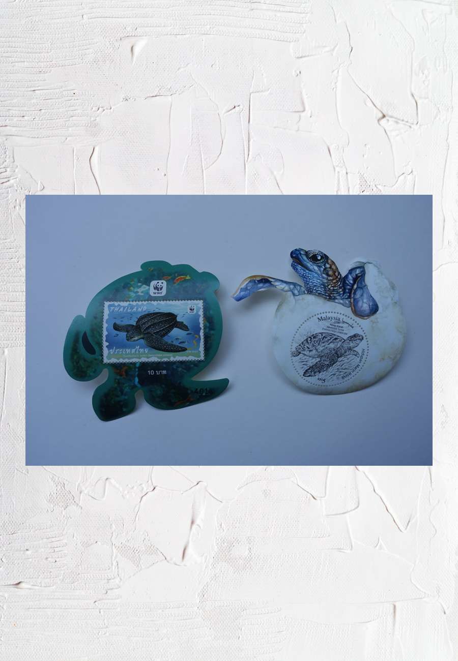 Schöne Blöcke aus Thailand und Malaysia. Neu ist hier, dass beide schon im Umriß auf ein Schildkröten-Motiv verweisen, zudem ist eine runde Briefmarke auch eher eine Rarität.