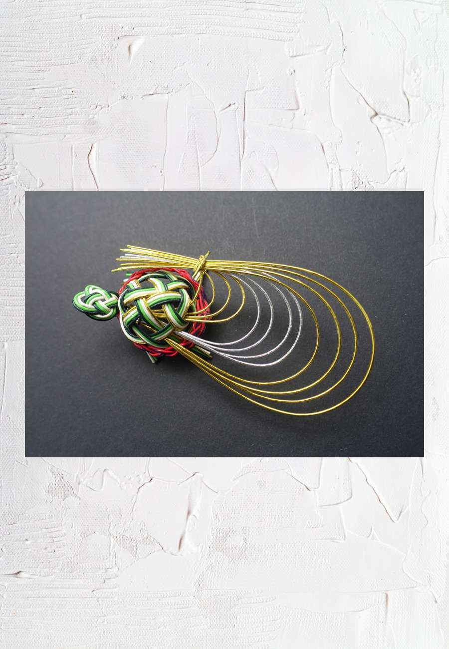 Moderne Form einer glückbringenden Minogame (" Suche : Japan"), aus farbigen Drähten geflochten und als Modeschmuck gedacht, Größe 11,5 cm.
