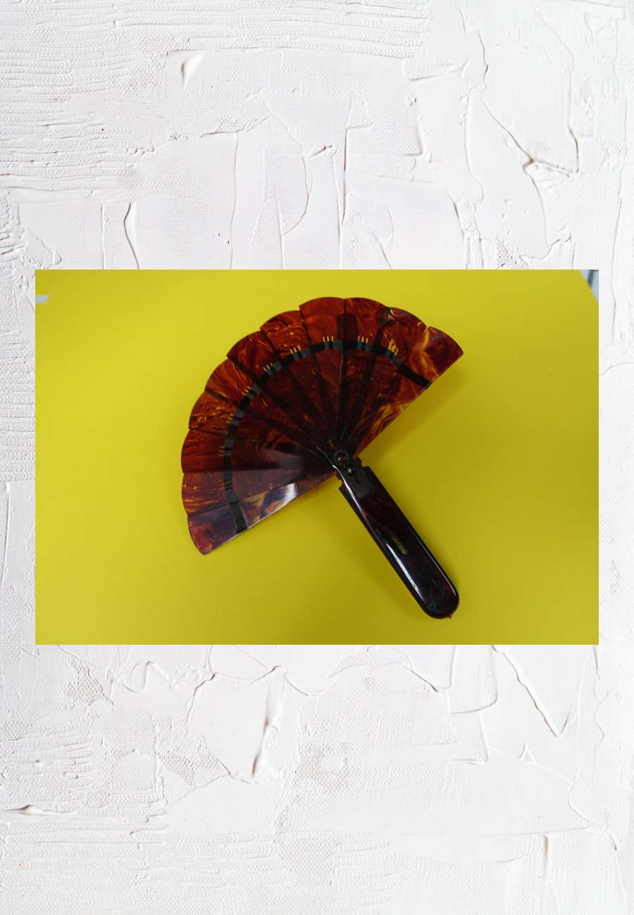 Dieser klappbare Fächer aus Schildpatt war um 1900 ein modisches Statussymbol, Breite ca. 18 cm. Es gibt noch ein zweites, wesentlich größeres Exemplar.