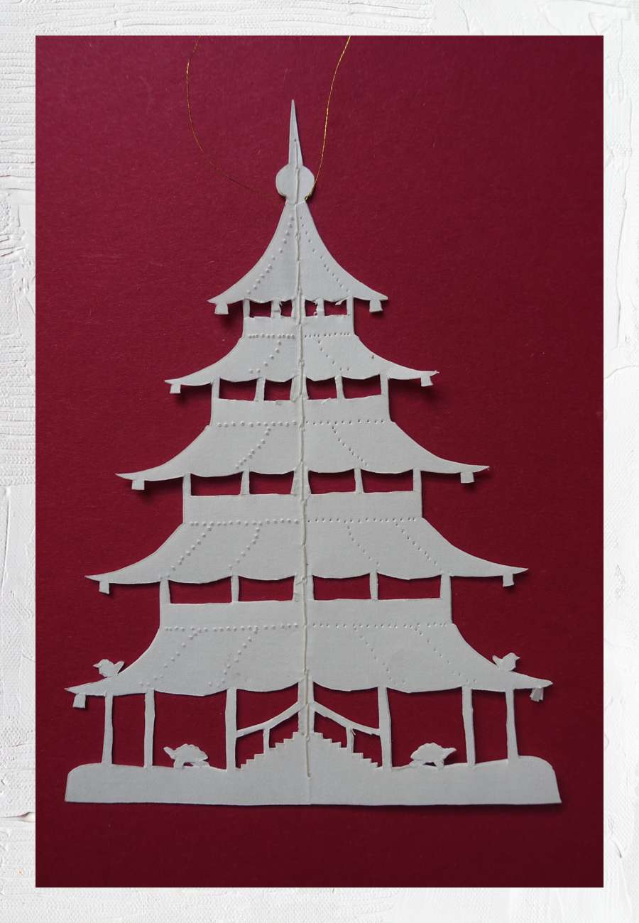 Auftragsarbeit, dreidimensional gefalteter Papierschnitt, der "Chinesische Turm" beherbergt
