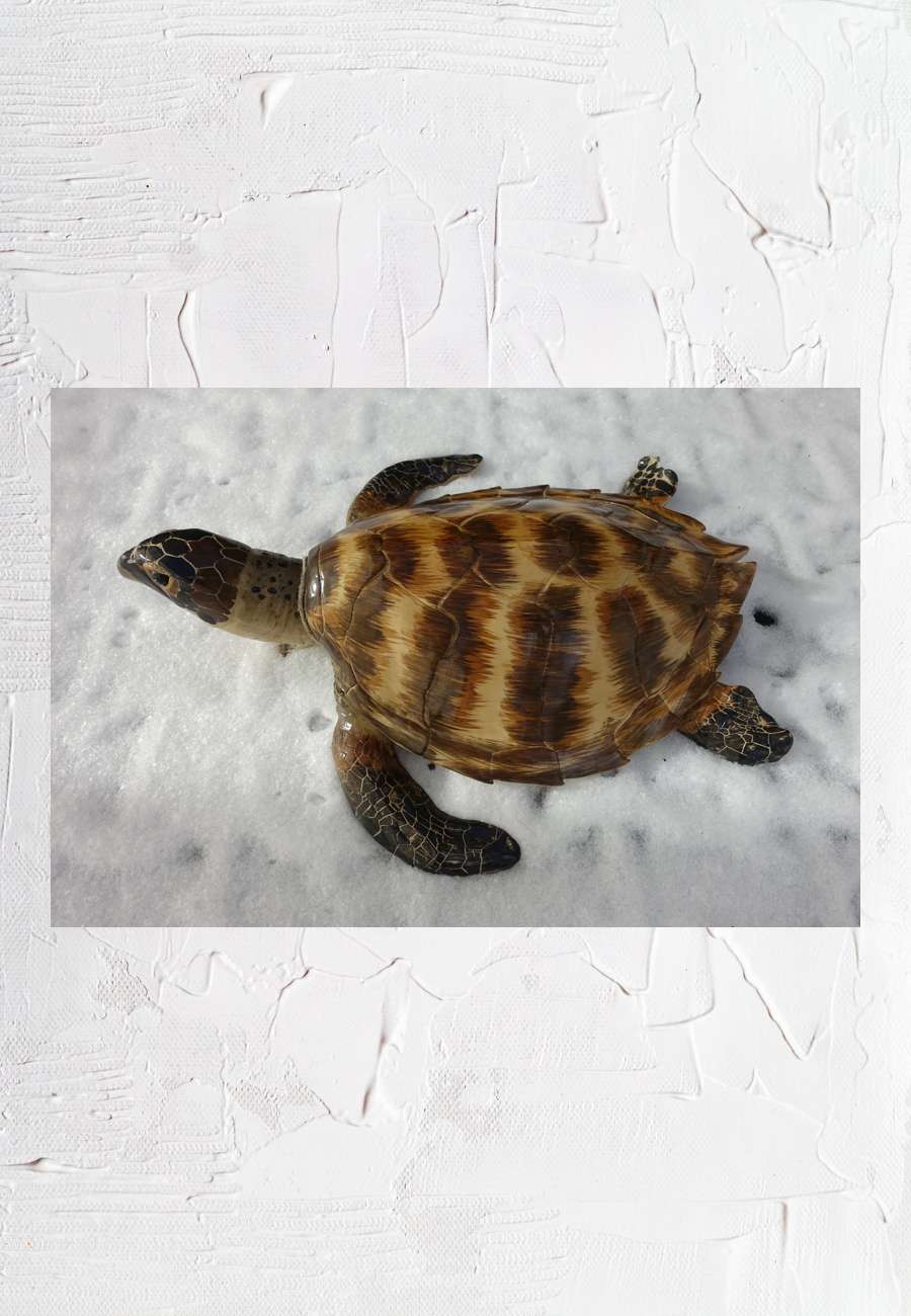 Diese ziemlich naturgetreue Meeresschildkröte ist aus Kunststoff und wurde für Dekorationszwecke hergestellt, Größe 70 cm.