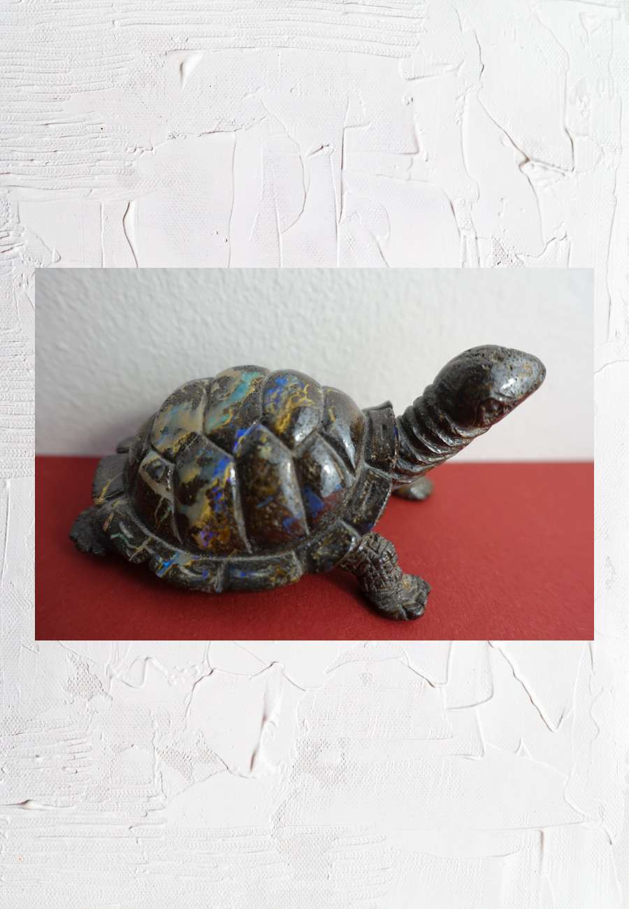 Dunkelbraunes Muttergestein mit blauen und grünen Opal-Einschlüssen, sog. Boulder-Opal (Australien), gut durchgestaltet, 8 cm.