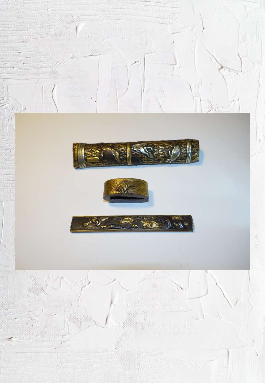 im Schwert-Stichblatt (s. Tsuba) gesteckt. In der Meiji-Zeit gab es ein Verbot, Schwerter zu tragen. In der Folge wurden viele wegen ihrer kunstvollen Gestaltung zerlegt und als Einzelteile ( siehe auch: Menuki, Fuchi, Kozuka) verkauft. Heute finden sich solche Teile, wie hier oft auch nur der obige Griff, in Sammlungen und Museen (z.B. Grassi-Museum Leipzig / u.a. auch Völkerkunde-Museum, mit einem Schwerpunkt auf Asiatischer Kunst).