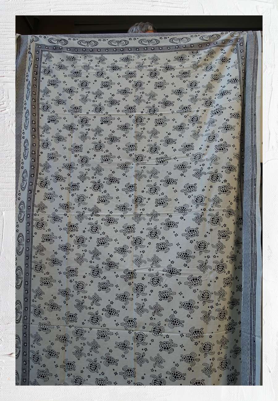 Abdecktuch, handbedruckt, Baumwolle, Größe 176 x 260 cm.