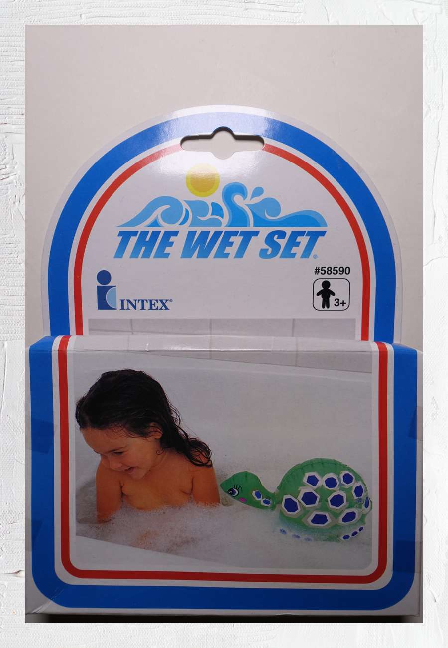 Badewannen-Spielzeug, aufblasbar, hergestellt im Auftrag der USA, vertrieben in Europa durch die Niederlande, made in China, Größe 31 cm.