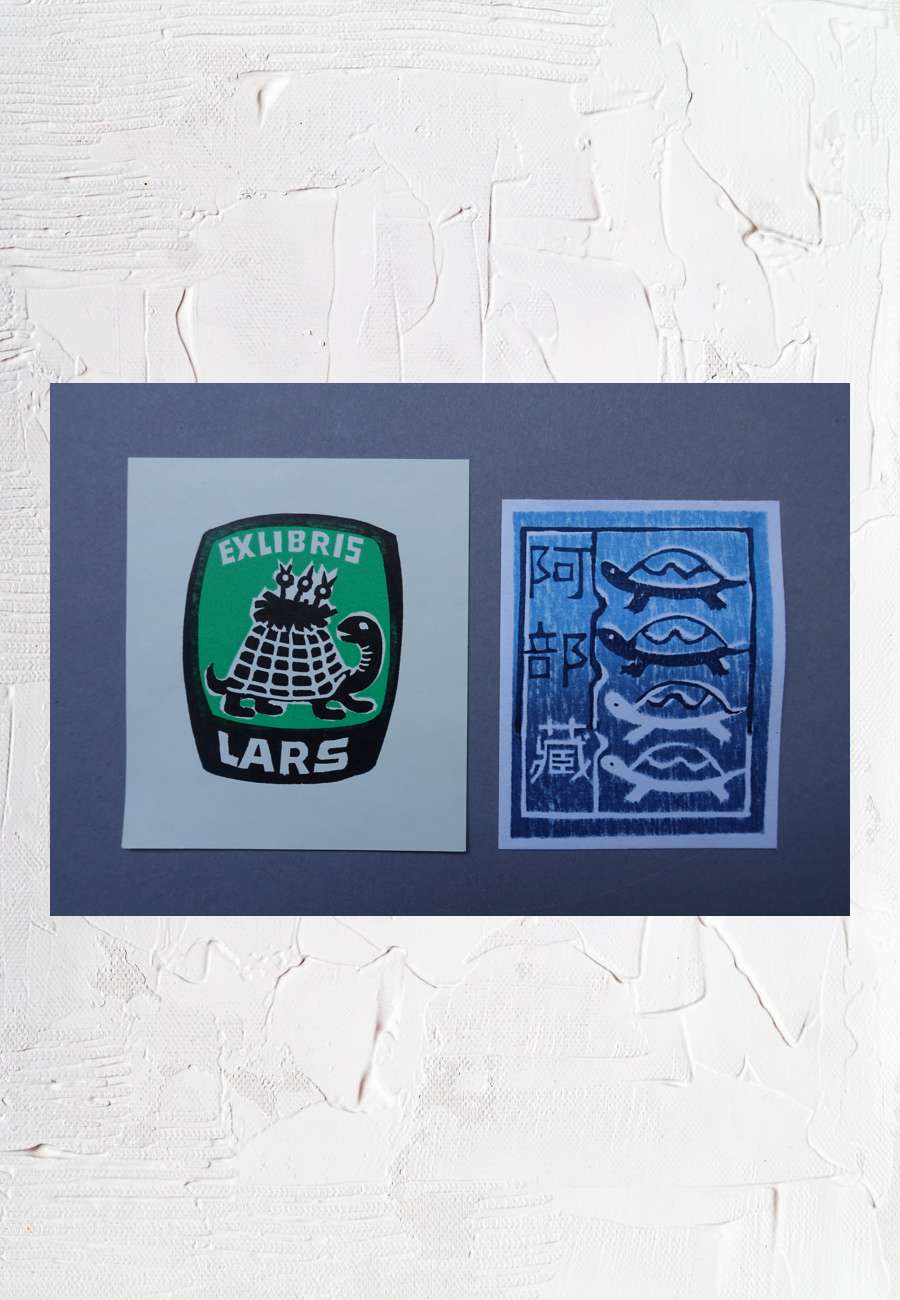 Abgebildet sind je ein Ex libris aus Dänemark und Japan.