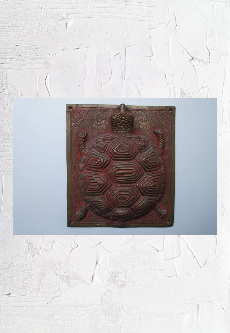 Älterer und plastischer Messingguss, massiv, patiniert, Größe 23,5 x 21 cm.