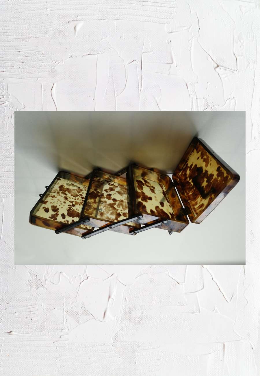Kästchen aus transparentem Schildpatt, mit drei ausziehbaren Fächern, um 1900, Herkunft London, erworben im Auktionshaus Scheuplein (München), Größe in geschlossenem Zustand 13 x 9 cm, 8,5 cm hoch, ausgezogen 28 cm.