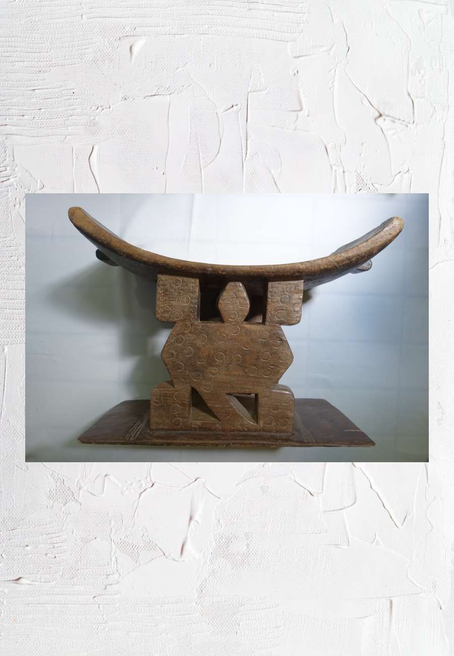 Großer Hocker eines Mannes, Iroko-Holz, die stilisierte Schildkröte auf beiden Wangen ist das Symbol eines angesehenen Clans der Ashanti in Kumasi, um 1940,