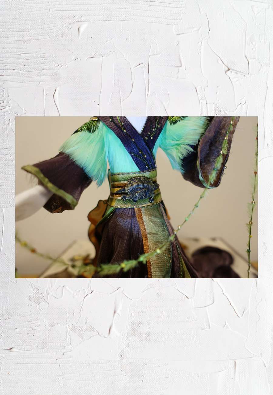 Ausschnitt zu dem schon beschriebenen "Fabelhaften Wesen", mit einem Menuki am Gürtel. Mehrere solcher Menukis wurden in den Griff von Samuraischwerter eingearbeitet (s. auch Tsuba, Fuchi, Kozuka).